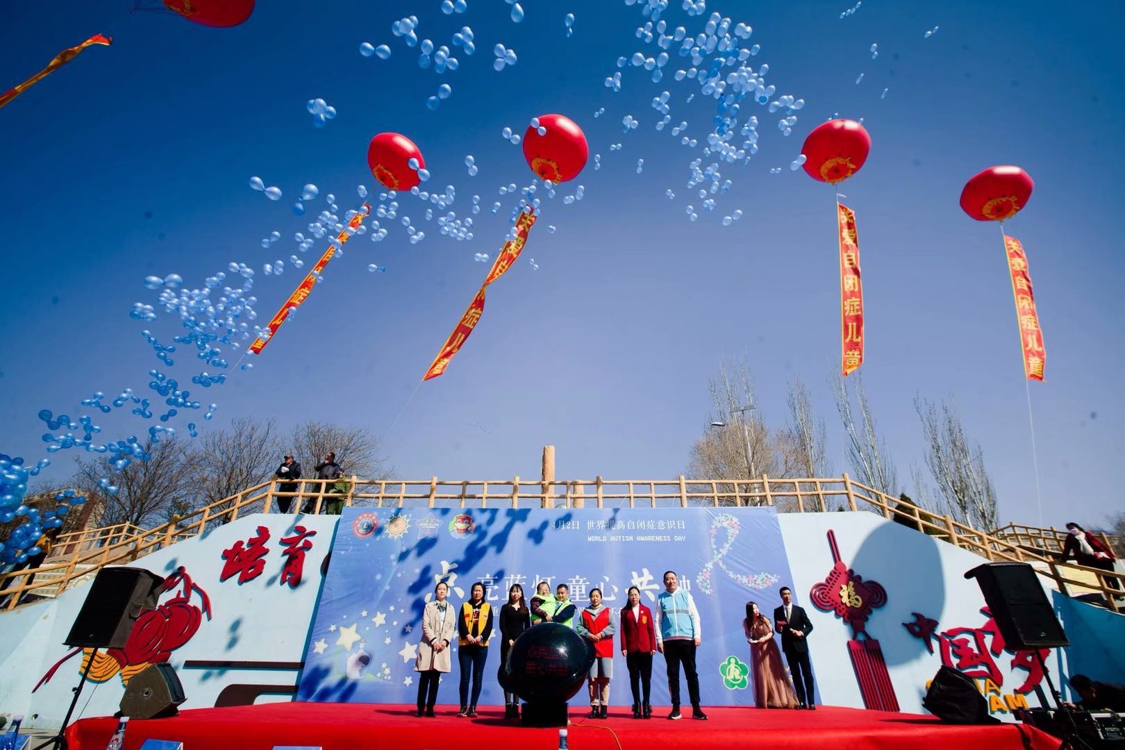 上午8点,中心全体教师们到达现场开始布置,吹气球、拉横幅、摆放物品、设置关卡等等。不到九点公园广场人员攒动,气氛热烈,孩子和家长们早早地等候在舞台前面,大家脸上洋溢着笑容,互相系着蓝丝带,欢愉的情绪感染着每一位参与者。志愿者发放宣传自闭症知识的传单,给行人发放蓝色气球,系蓝色丝带,让更多的人了解并关注这一特殊群体。